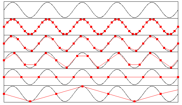 また、サンプリング周期が波長の半分より大きいと偽の振動(