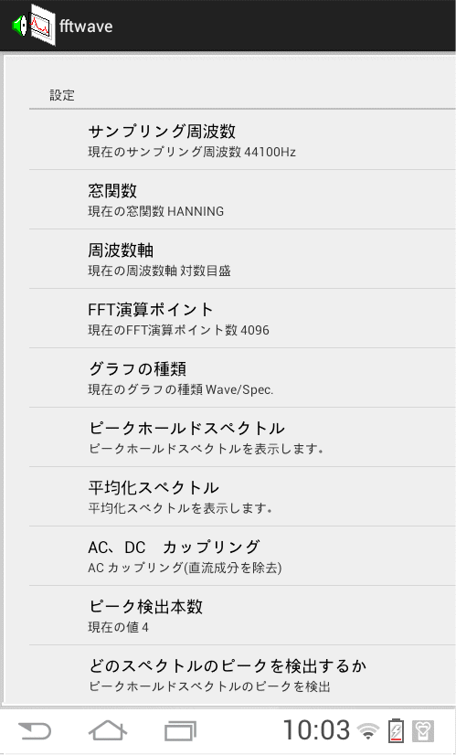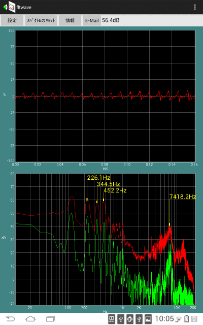 このソフトは iPhone, iPad, android スマートフォン、タブレット等のマイクからの音声をフーリエ変換し、音の周波数特性をリアルタイムで表示することができます。